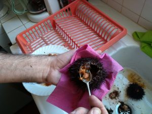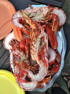 A washing line (Lindsey has been taking pictures of washing lines all over the world for the past 10 years)Sardinas in SantoñaRabas (aka calamari)Oysters a la ColinA giant puff ball. Not on the menuLtoR: Colin, Lindsey, Luisa, Merche, Jesus, Jose, Juanma, RosaCount… 4 lobsters