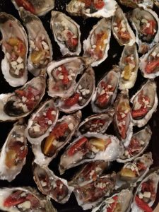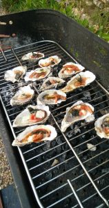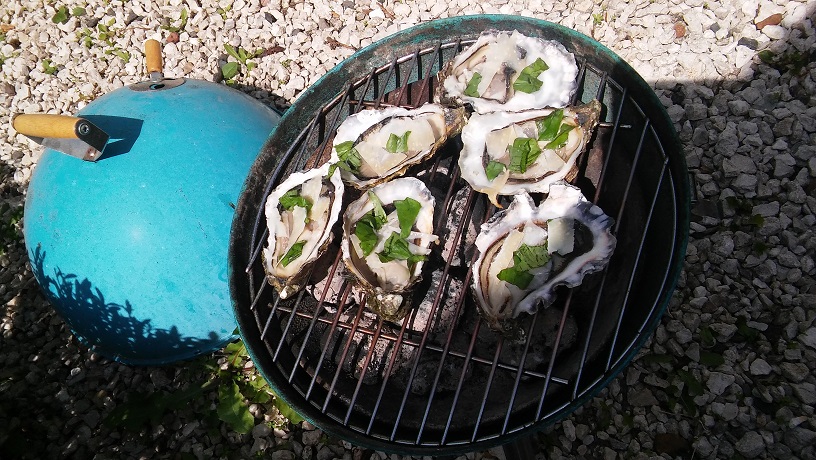 Sunday, Casa German for lunch (my red beans were just as good as the chipirones en su tinta I had as a second course, Lindsey preferred Asparagus and meat). In the evening I prepared one of my specialities: barbecued oysters.