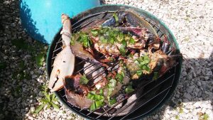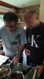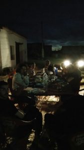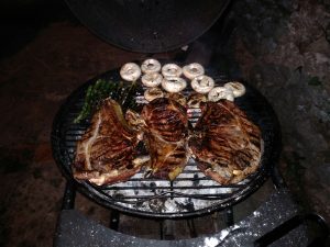 In the evening, when possible, we put a table out, drink wine with the meat which has been gently cooked on the vine shoots. And look at the sky, count the shooting stars.