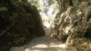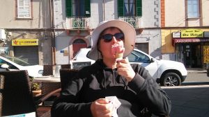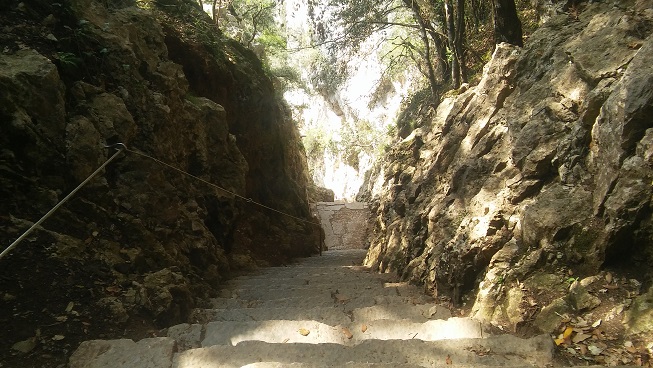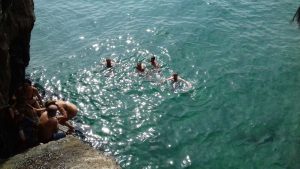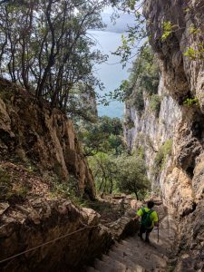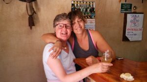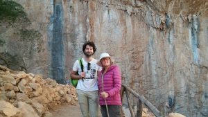 Agriturismo is one of Italy’s best ideas. These are run on farms: the lodgings are rather basic but the bonus is the food. We opted for Dinner and Breakfast. And we were not disappointed: great food, most of which came from the farm itself. We drove around the area and on the Sunday went for the large expedition of the journey. We walked up to the Nuragic village of Tiscali. This prehistoric village is high in the mountains of the Supramonte. It took us more than 2 hours to get to the top. This was hard work for Lindsey (to be fair, I underestimated the hardness of the task); in Vikki’s pictures you will see some of the techniques we used to get up.