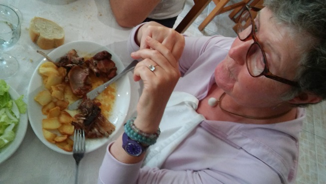 On the Saturday, lunch was in a restaurant in the medieval city of Lierganes. We then drove to the Severiano Ballesteros international airport for Jose and Luisa to drop their car. And from there to the coast. Rocky with huge cliffs and lovely beaches. In the town of Ajo we managed to do some shopping: more meat which was duly grilled in the evening.