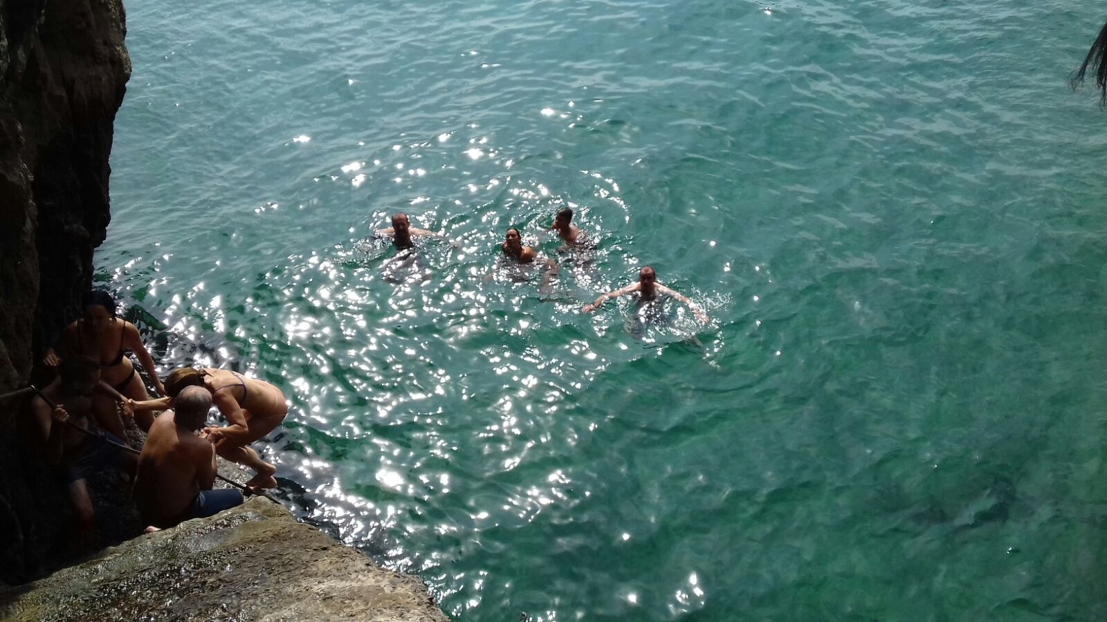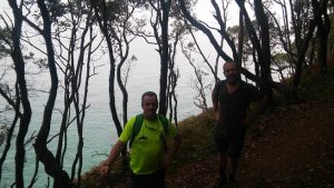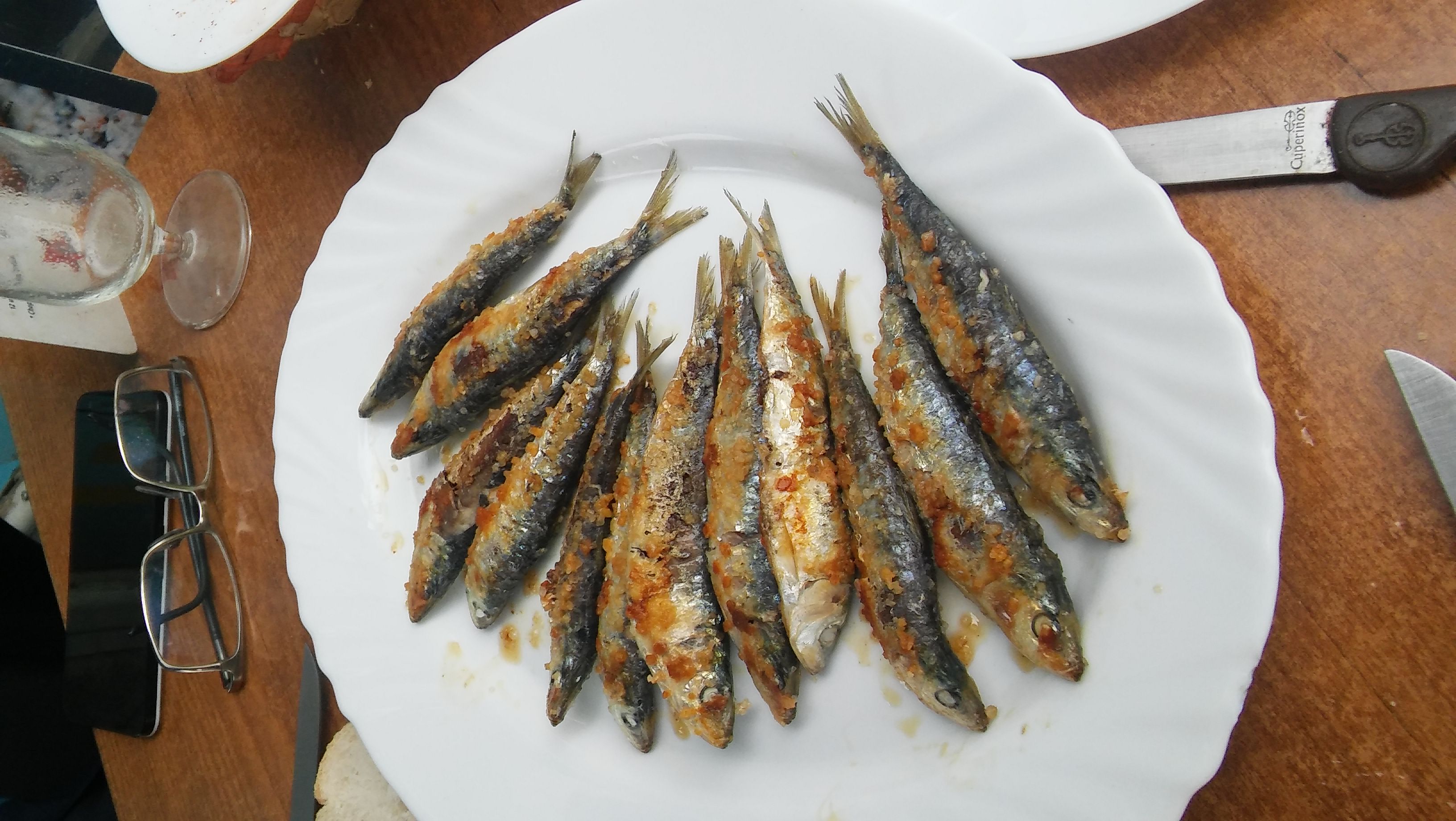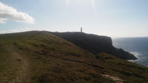 Thursday we had the chuletones (T-bones) we had bought a few days ago in the local shop. As an aperitif I produced a plate of Bonito sushi which was lovely. In the morning we had separated into 3 groups. Juanma and Rosa chose the beach; Lindsey Luisa and Merche went to the local village of Escalante where there were fiestas: they seem to have had a great time. Jesus, Jose and I went back to Santoña where we waked all the way round the hill which closes the entrance to the bay. The walk involved getting to two lighthouses, the most impressive being el Faro del caballo which you reach after a steep climb down 740 steps. When you get to the faro you can still go down a little and throw yourself into the crystalline (but cold) waters of the bay. Which we did of course. When reaching Santoña again, we found a bar to eat something, choosing two dozen sardines, some anchovies (of course), pulpo and other wonderful seafood.