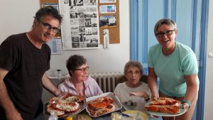 And on Saturday 29th we were off. The first trip was simple: down to Fromentine, less than an hour away, where we met up with Ulli and Jacques, and Jacques mother “Mémie”. From there the boat to the island of Yeu. Pictures of the island are in the Blog a few weeks ago (on the first of May we were there). Vikki and Fabien were very kind with us and Fabien even let us have his car. This resulted in me being stopped by the police while bringing some lobsters to the fridge.